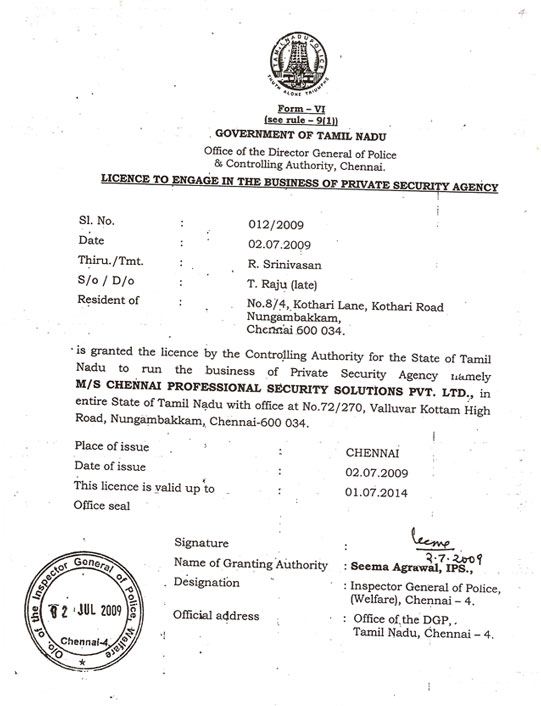 A Silver Jubilee Organization, Celebrated its 25th Year of Establishment on 29/04/2015. We are glad to introduce ourselves as one of the medium - sized., effective security organization in Tamilnadu. " Chennai Professional Security Solutions Pvt Ltd.," started by a seasoned professional who had a long association with a pioneer in this industry in India.